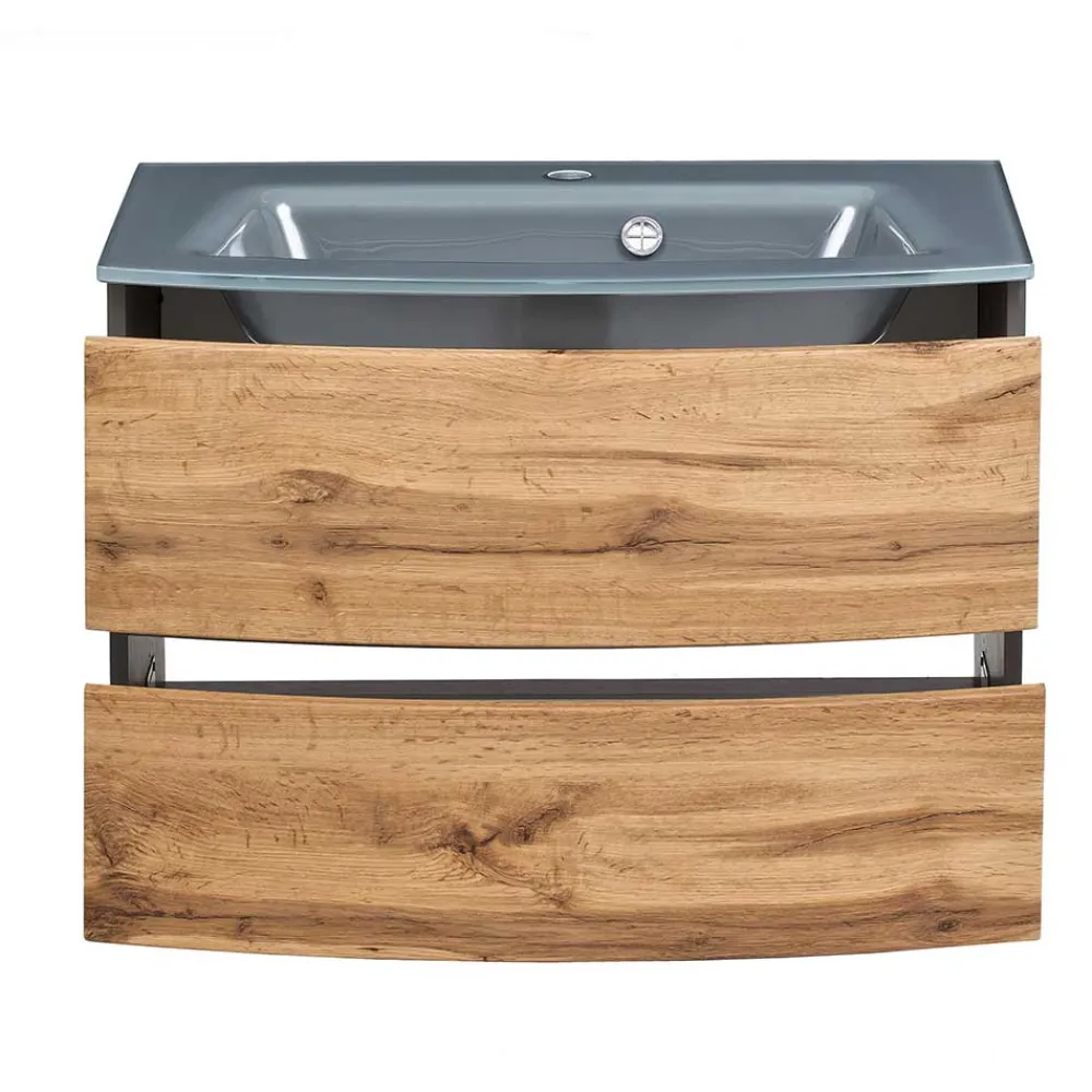 - Formschöner Waschtisch in Wildeichefarben und Dunkelgrau