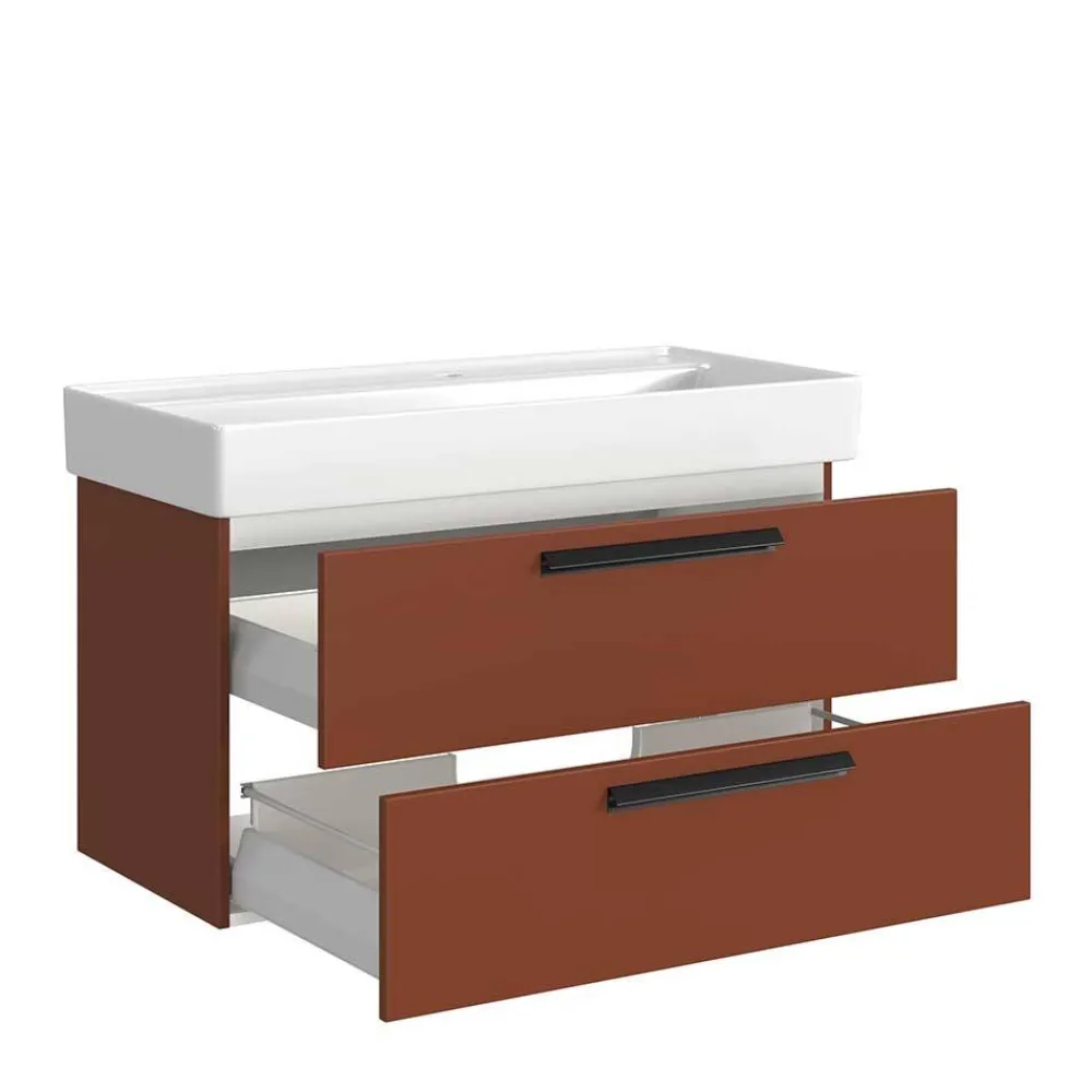 - Zwei Schubladen mit Metallauszug und Soft-Close Funktion, in der oberen ein Siphonausschnitt