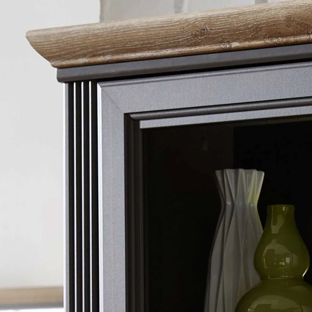 - Erstklassige Wohnwand in Dunkelgrau und Eichefarben