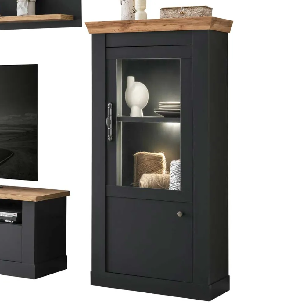 - Trendstarke Wohnwand in Anthrazit und Wildeichefarben