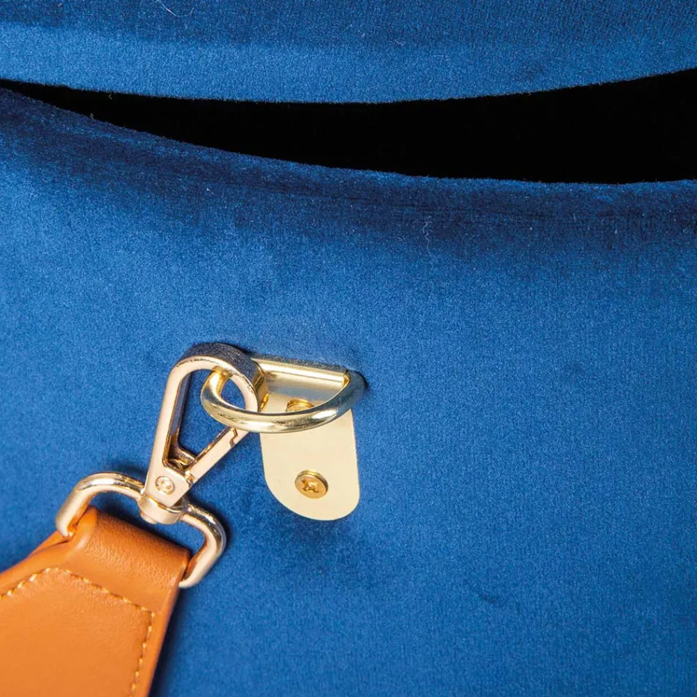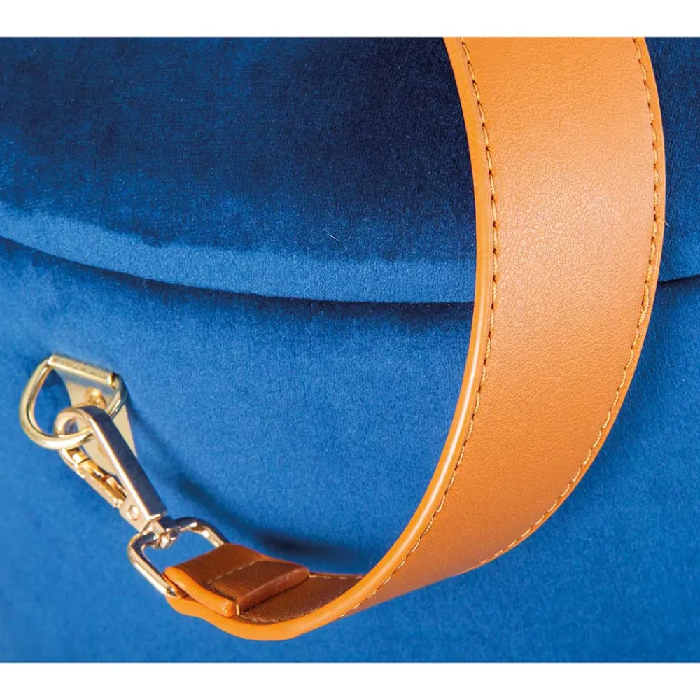 - Bezug aus weichem Samt (100 % Polyester), abnehmbarer Tragegurt aus Kunstleder (100 % Polyurethan)