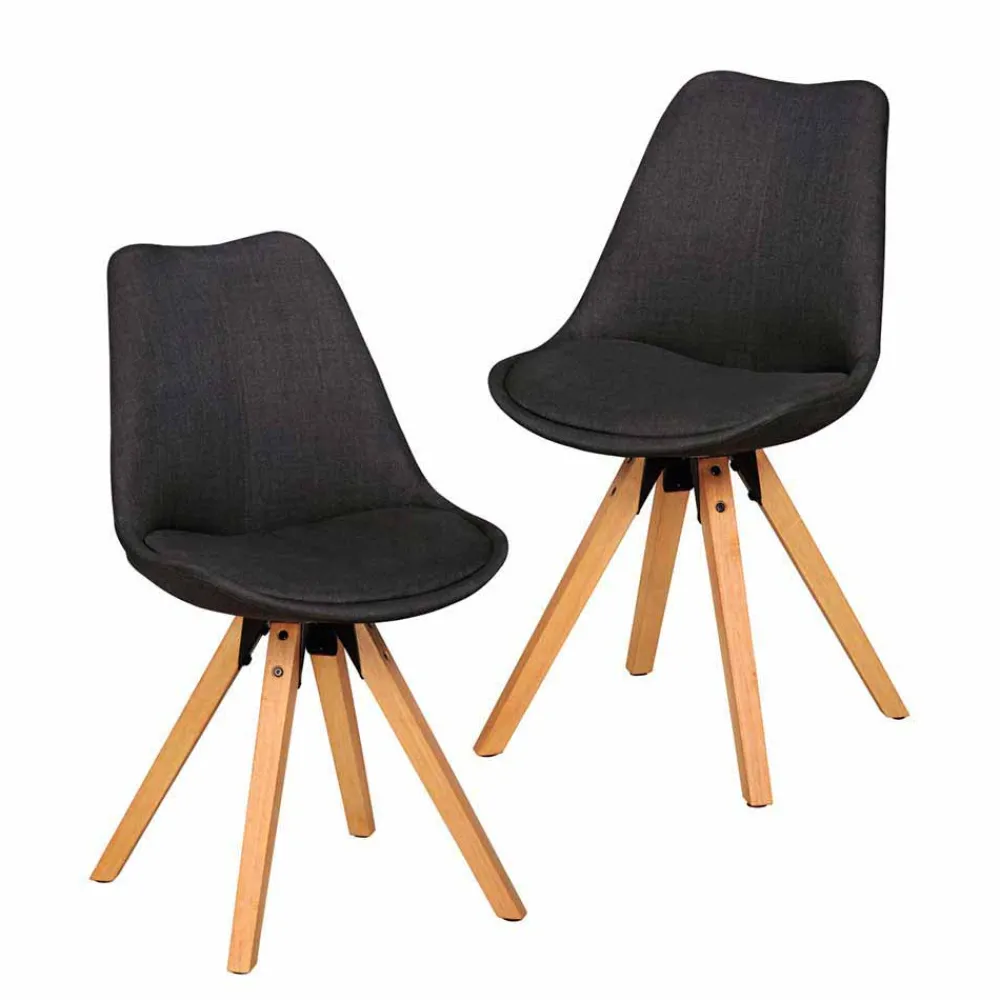- Geschmackvolles Stuhl Set in Anthrazit und Holz Naturfarben