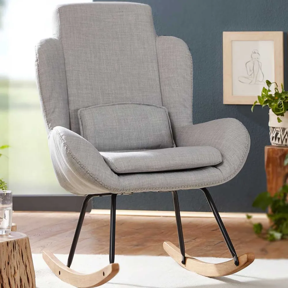 - Angefertigt aus Webstoff, Metall und Gummibaum Massivholz