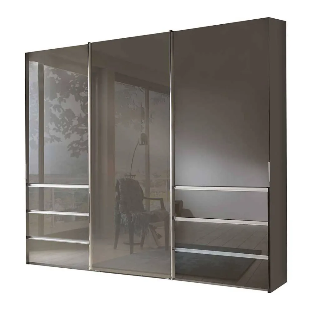 - Oberfläche der Front mit Glas beschichtet, Korpus foliert, Innendekor Silber-Grau gestreift