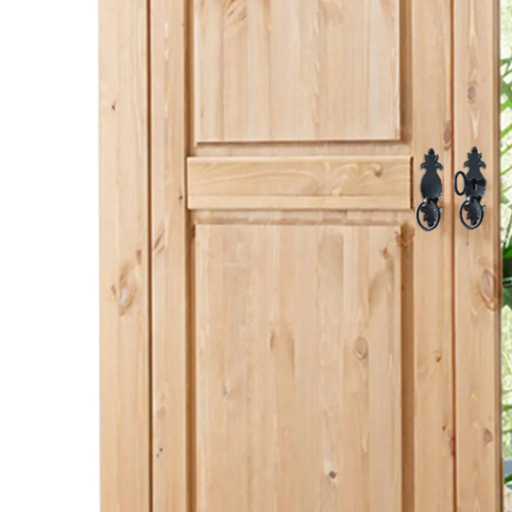 - Innen befinden sich zwei Kleiderstangen und fünf Holzböden