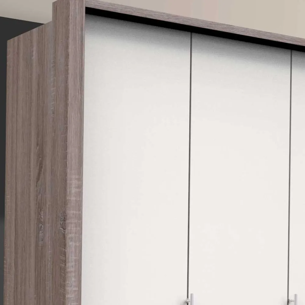 - Vielseitiger Kleiderschrank in Weiß und Eiche Trüffelfarben