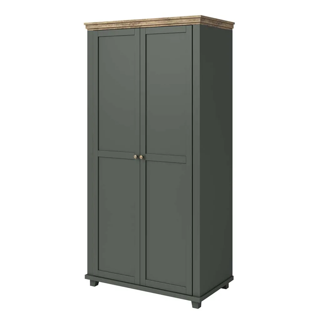 - Attraktiver Kleiderschrank in Dunkelgrün und verwitterter Holzoptik