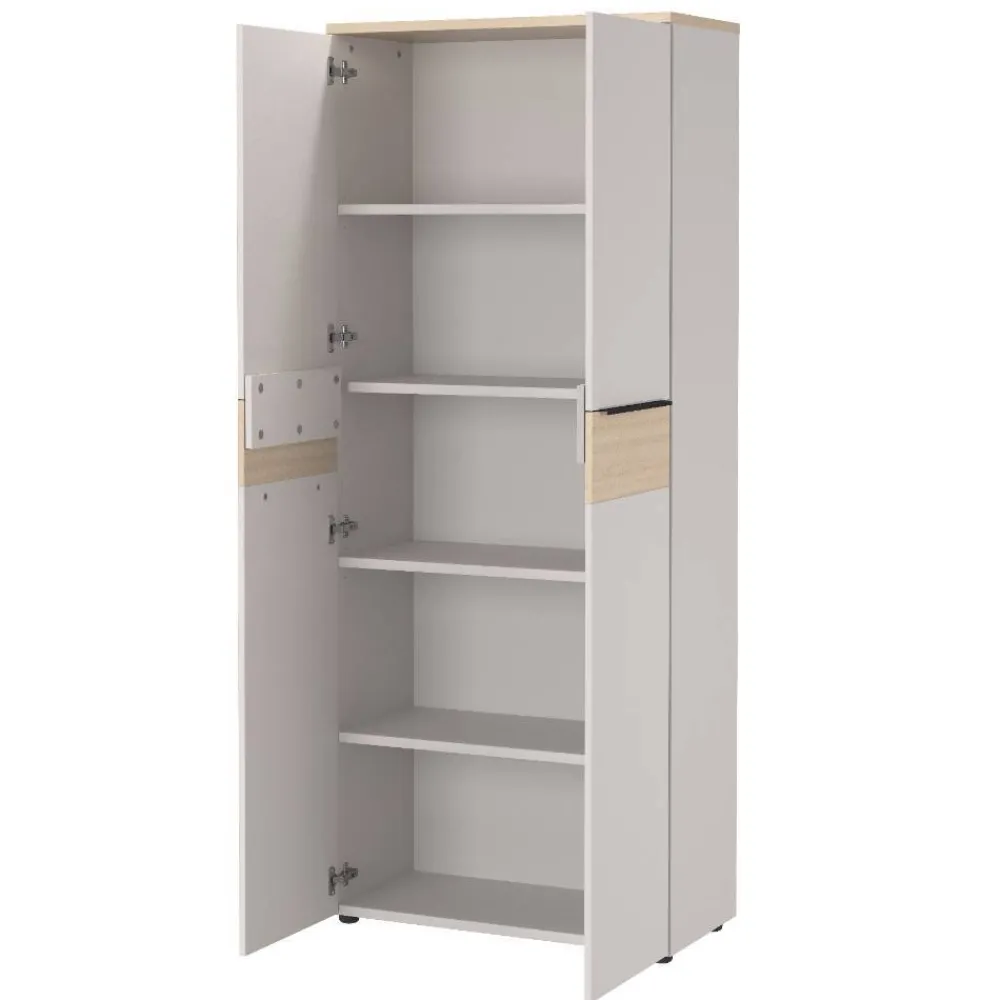 - Zeitloser Aktenschrank in Hellgrau und Eiche hell