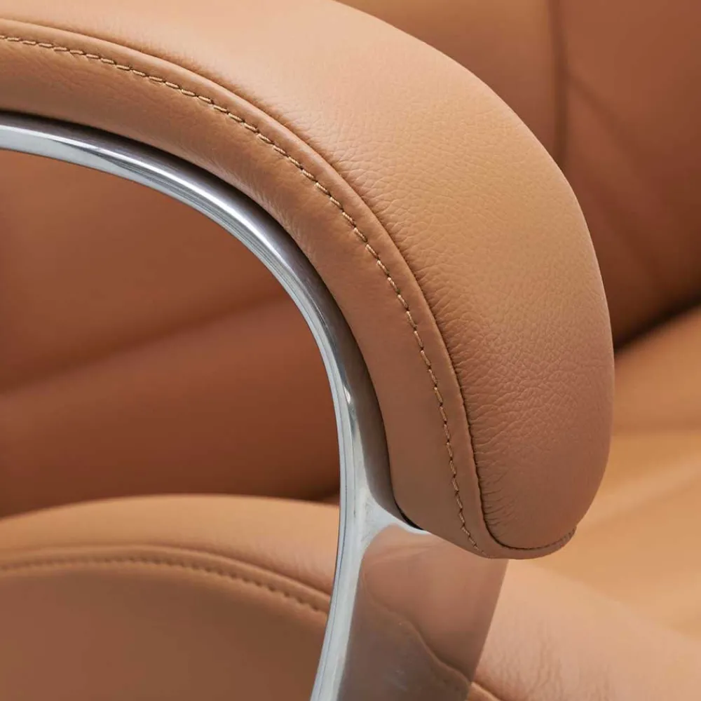 - Herausragender Chefsessel in Hellbraun und Silberfarben