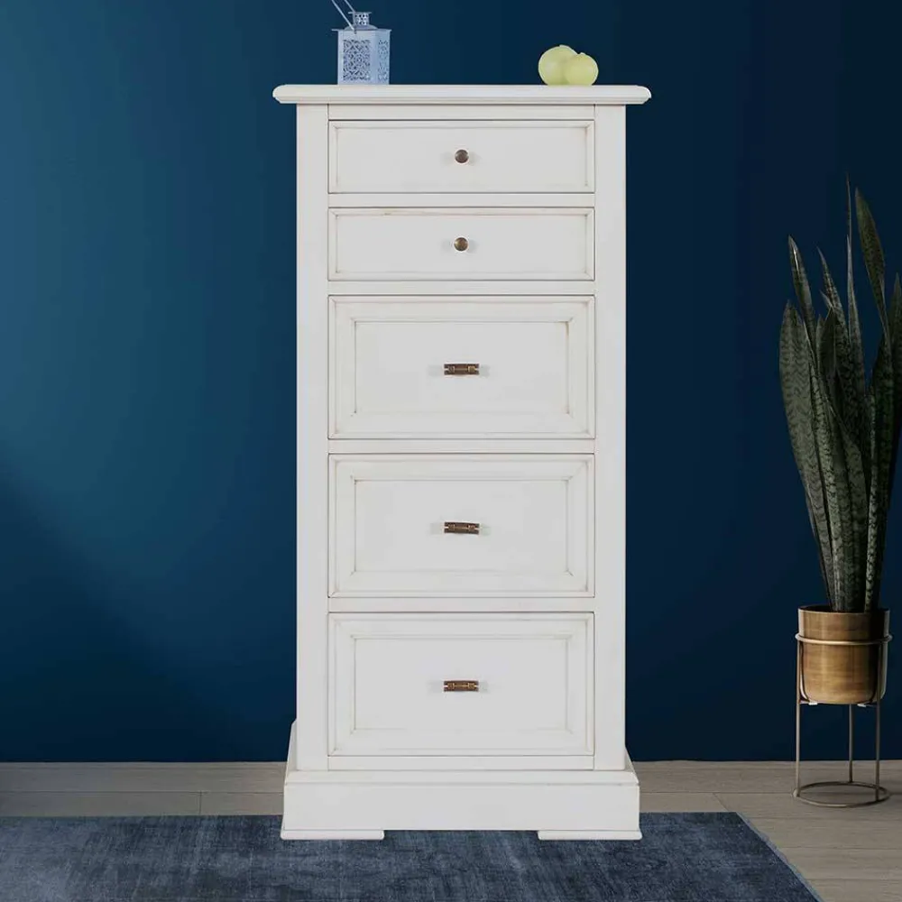 - Fünf geräumige Schubladen mit praktischem Holzauszug bieten viel Stauraum