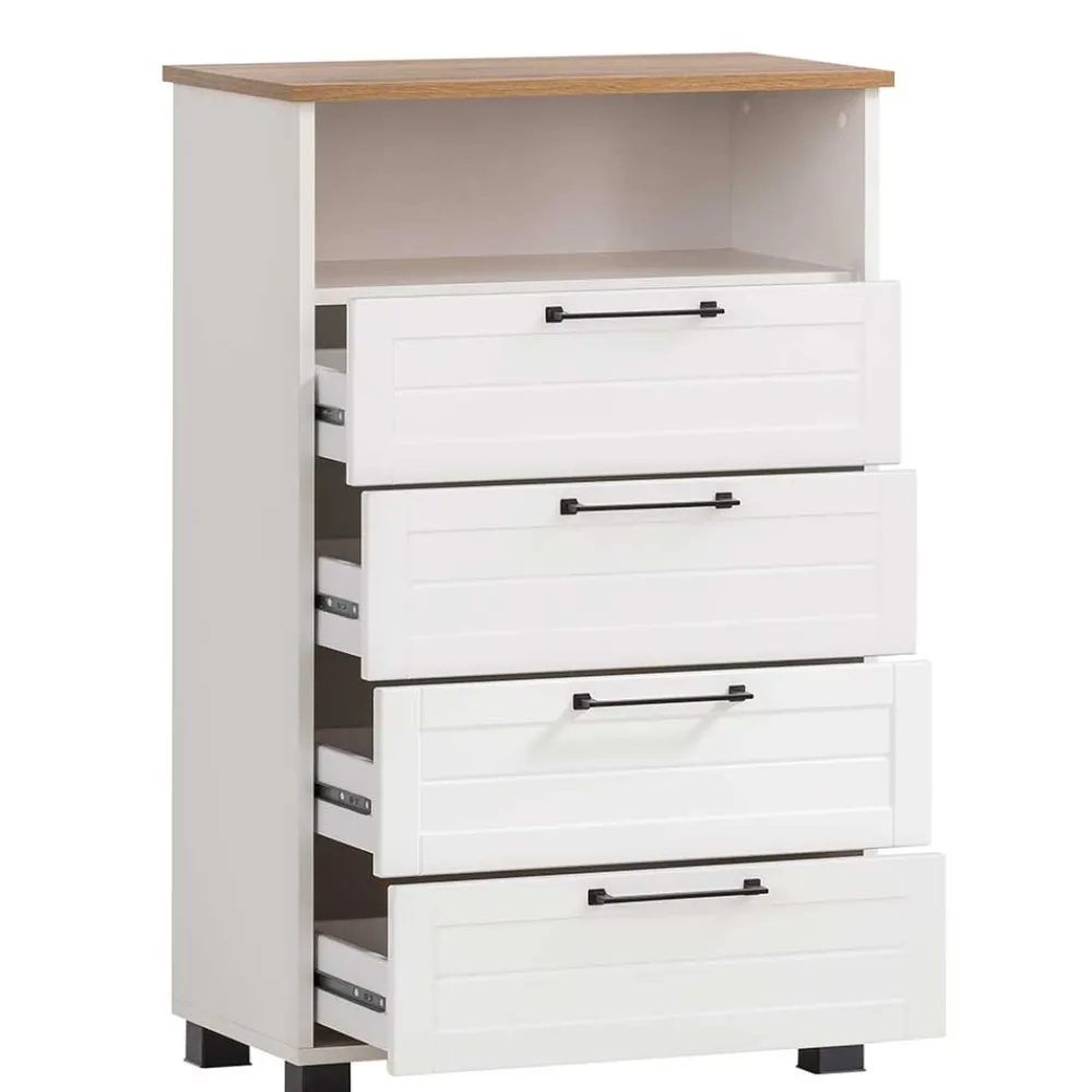 - Geräumiges Highboard in Weiß und Eichefarben