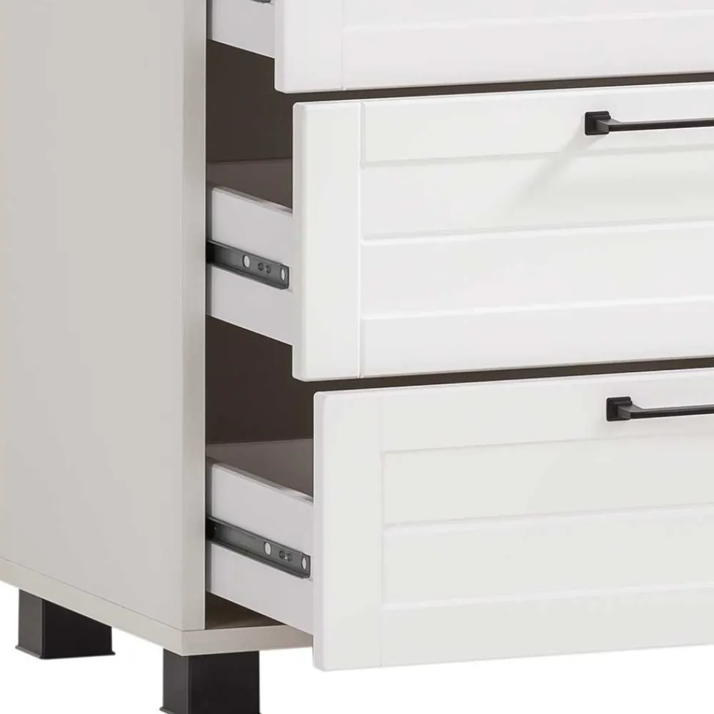 - Vier Schubladen mit Metallauszug (Teilauszug), Innenmaße: BxHxT: je ca. 53,2×14,5×25,8 cm
