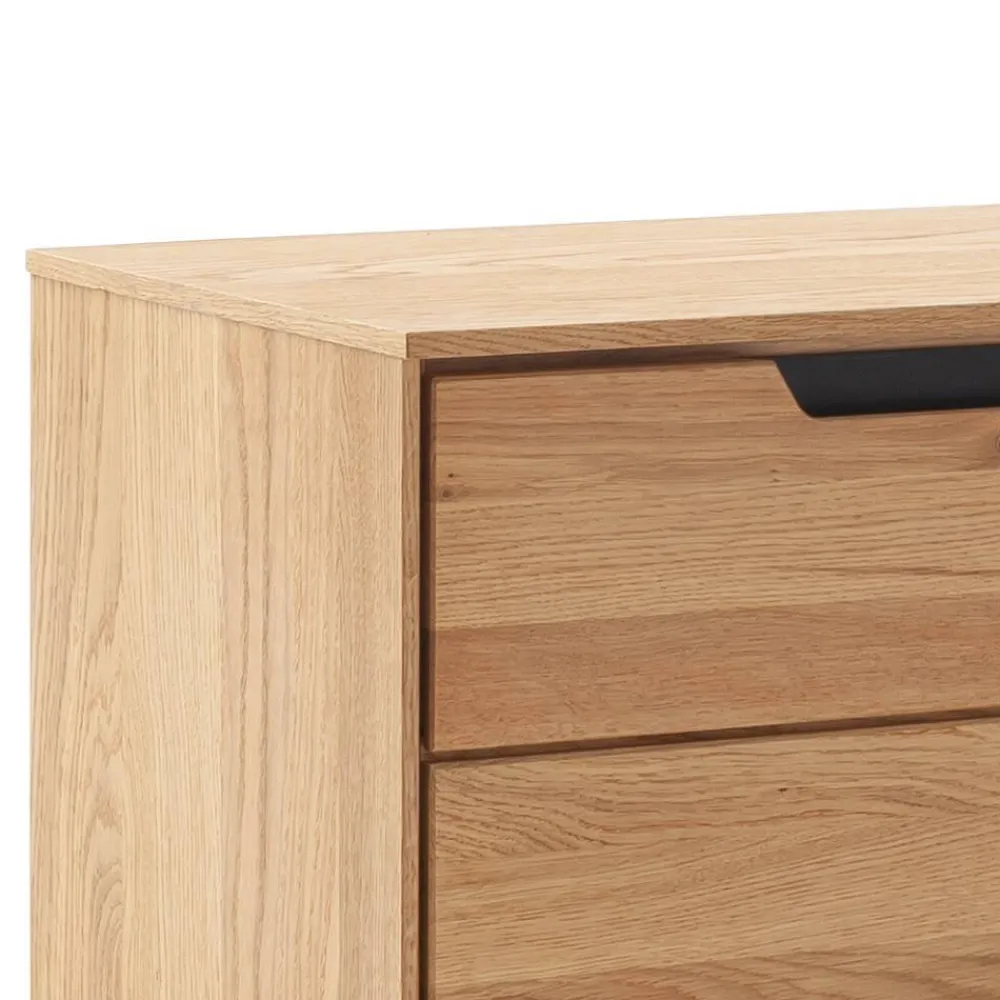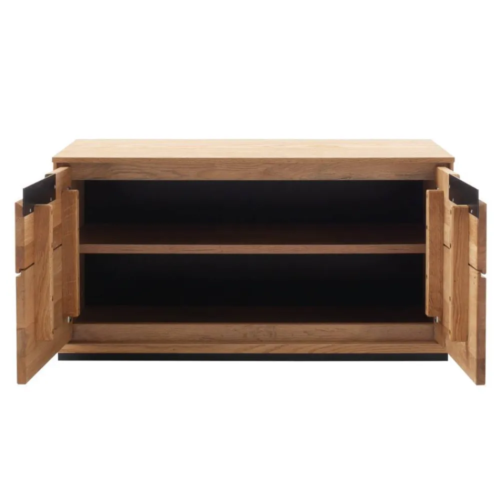 - Massivholz geölt, Holzwerkstoff außen echtholzfurniert und geölt, innen in Holzoptik foliert