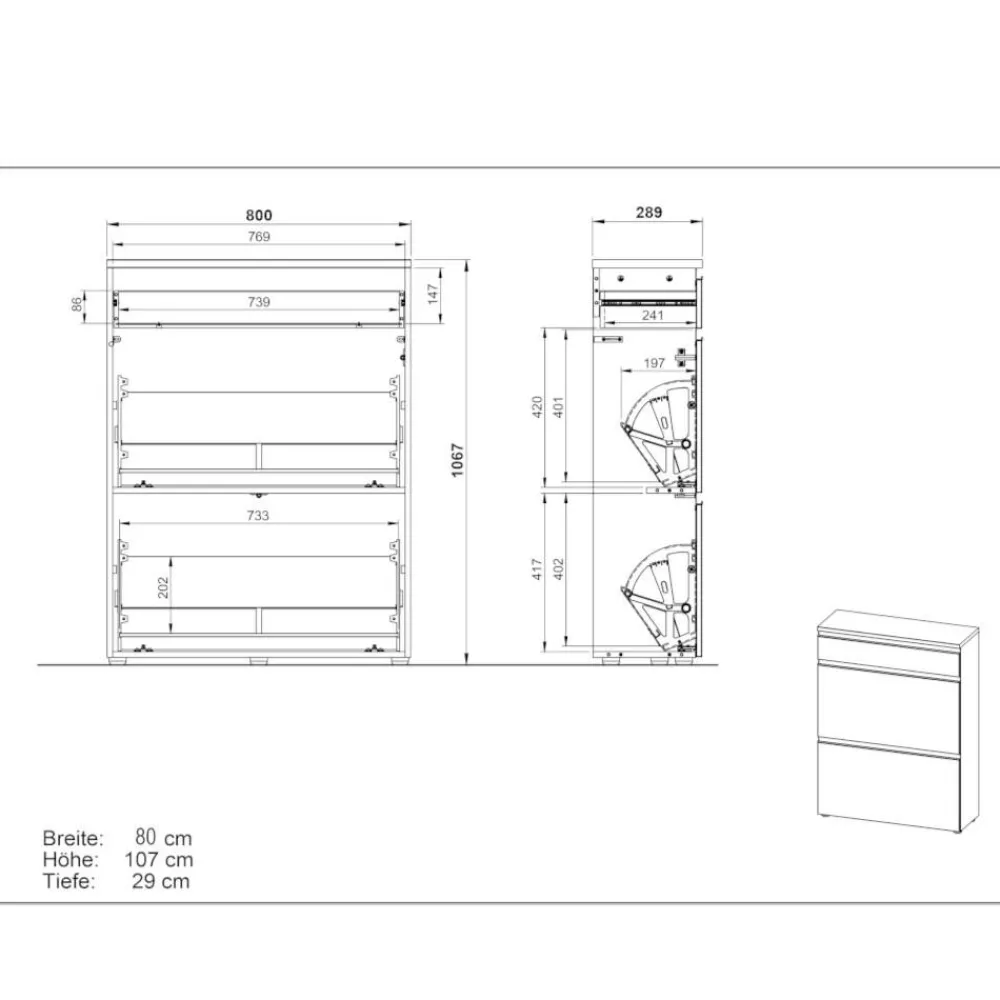 - 80 cm Breit, 107 cm Hoch, 29 cm Tief