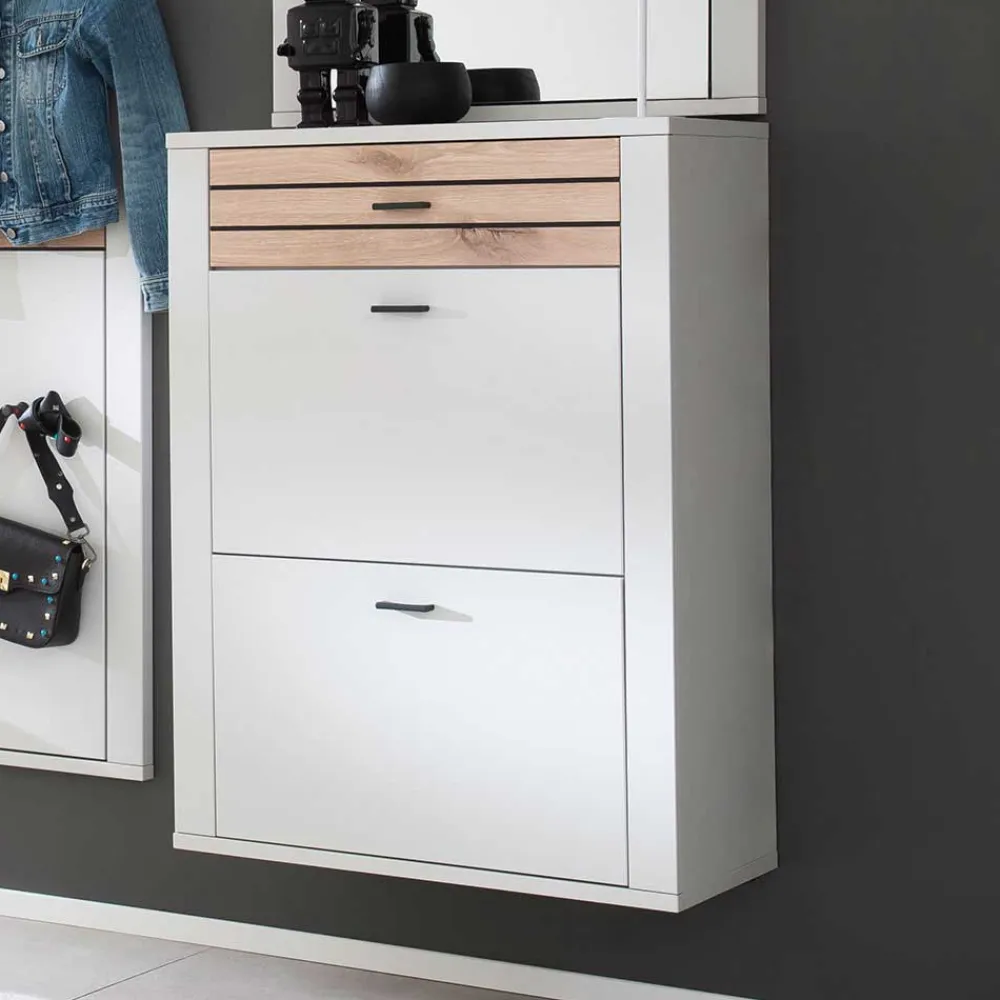 - Raumsparender Schuhschrank in Lichtgrau und Wildeichefarben