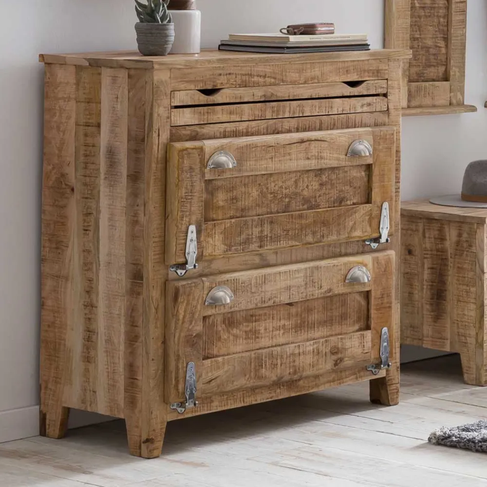 - Großzügiger Schuhschrank in Mangoholz Naturfarben