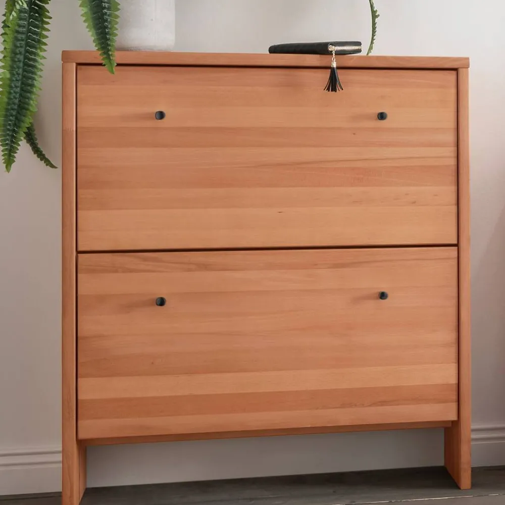 - Zeitlos modern ist dieser Schuhschrank in Buchefarben