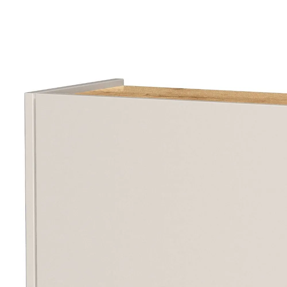 - Front in Hellgrau, Deckplatte und Innenraum in Holzoptik Wildeiche melaminbeschichtet