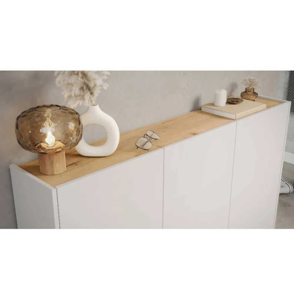 - Attraktiver Schuhschrank in Hellgrau und Wildeichefarben