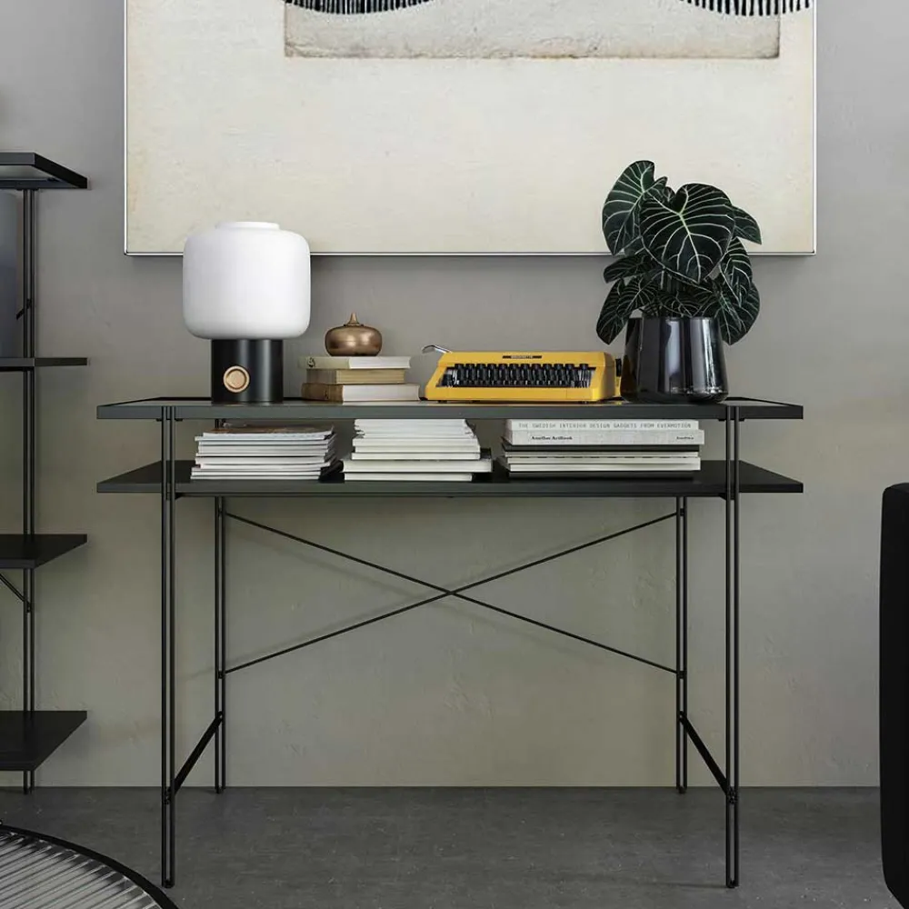 - Filigranes Vierfußgestell aus schwarz pulverbeschichtetem Metall