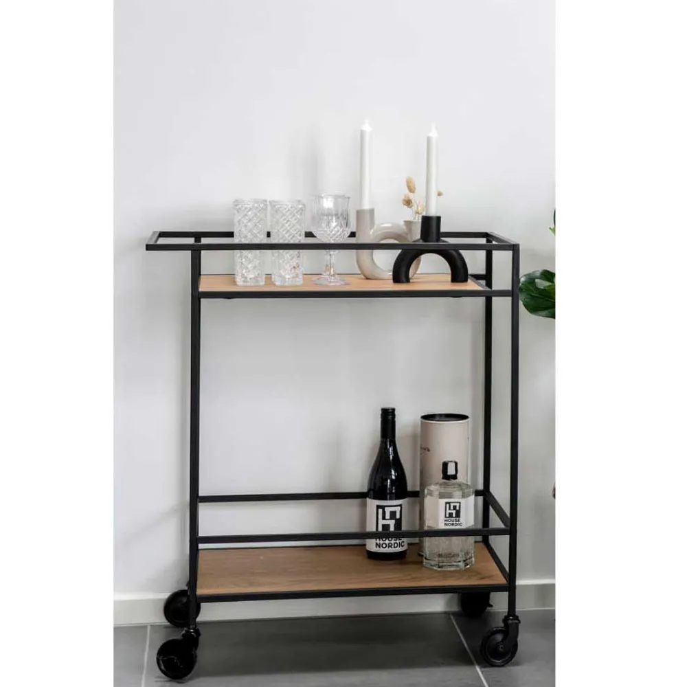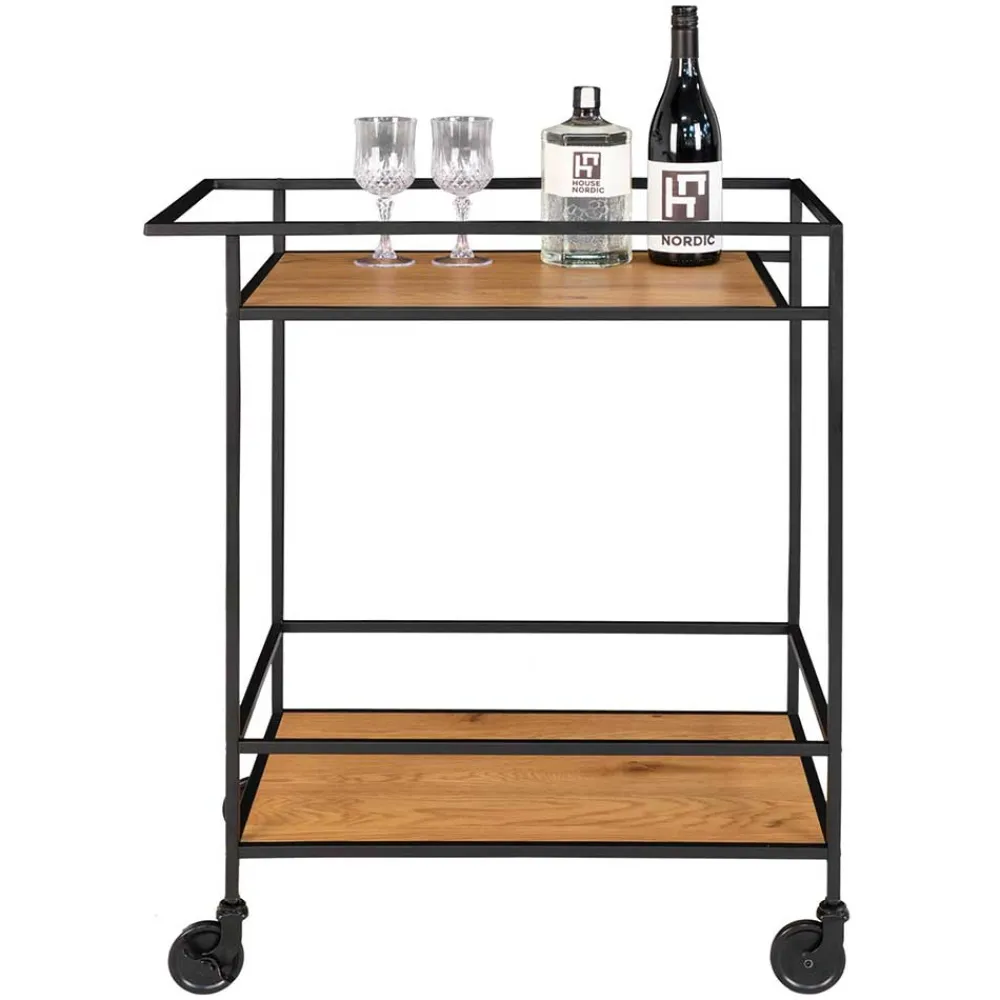 - Kompakter Servierwagen in Eichefarben und Schwarz