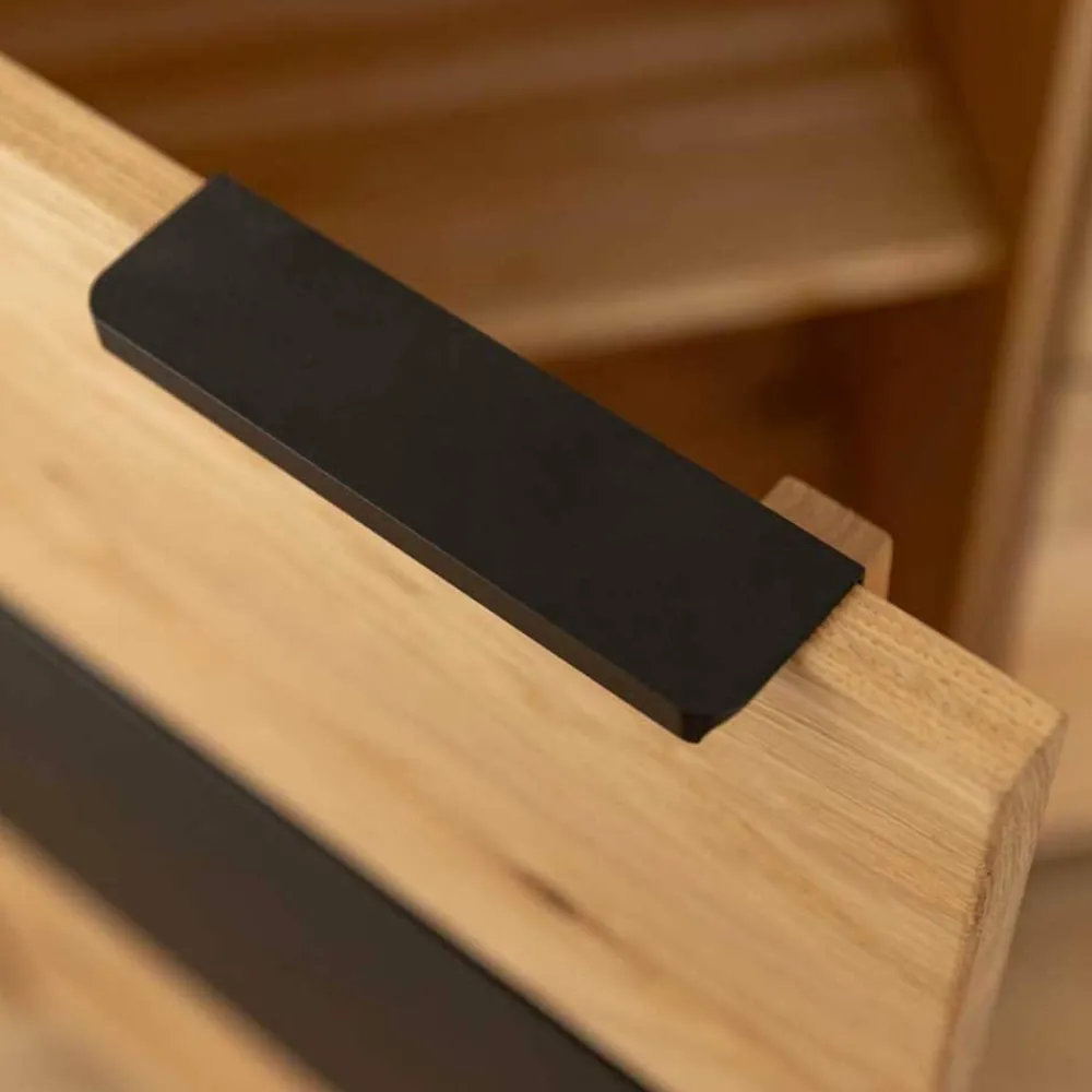 - Holzoberflächen geölt sowie mit schwarzem Glas beschichtet