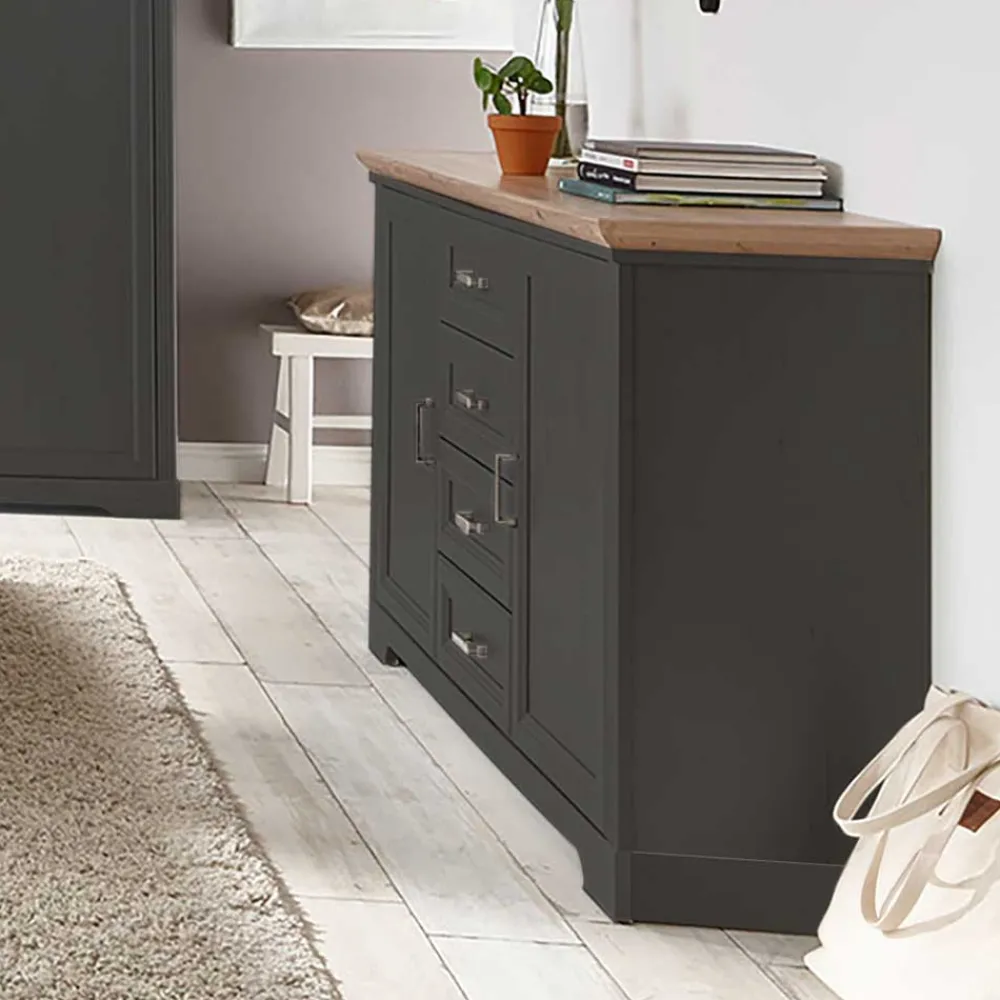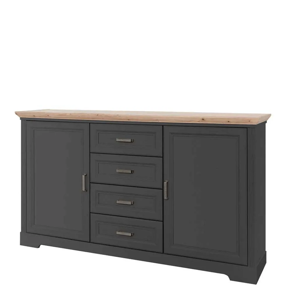 - Modern präsentiert sich diese Kommode in Wildeichefarben und Dunkelgrau