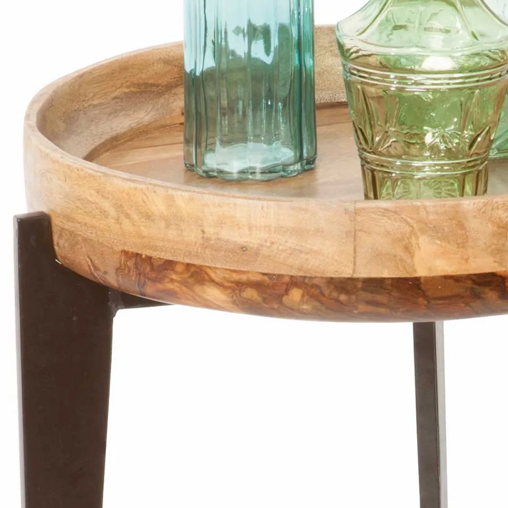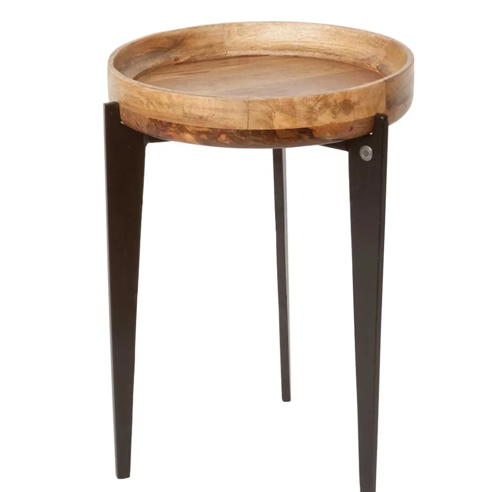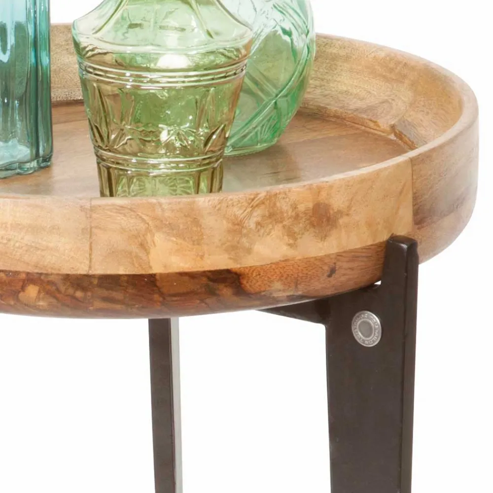 - Praktischer Beistelltisch in Mangoholz Naturfarben und Schwarz