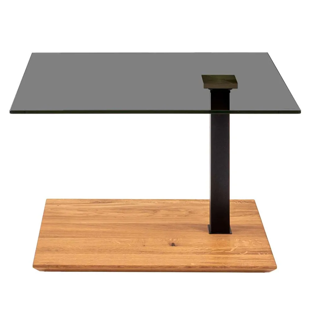 - Aus Glas, Metall und Wildeiche Massivholz angefertigt