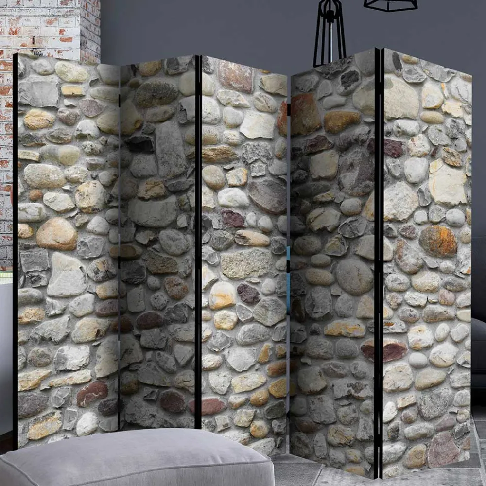 in Steinmauer Optik und Braun und Grautönen