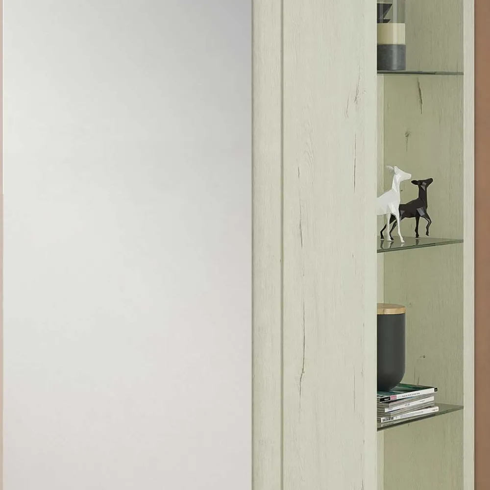 - Seitlich ein zusätzliches Regal mit sechs Glasböden