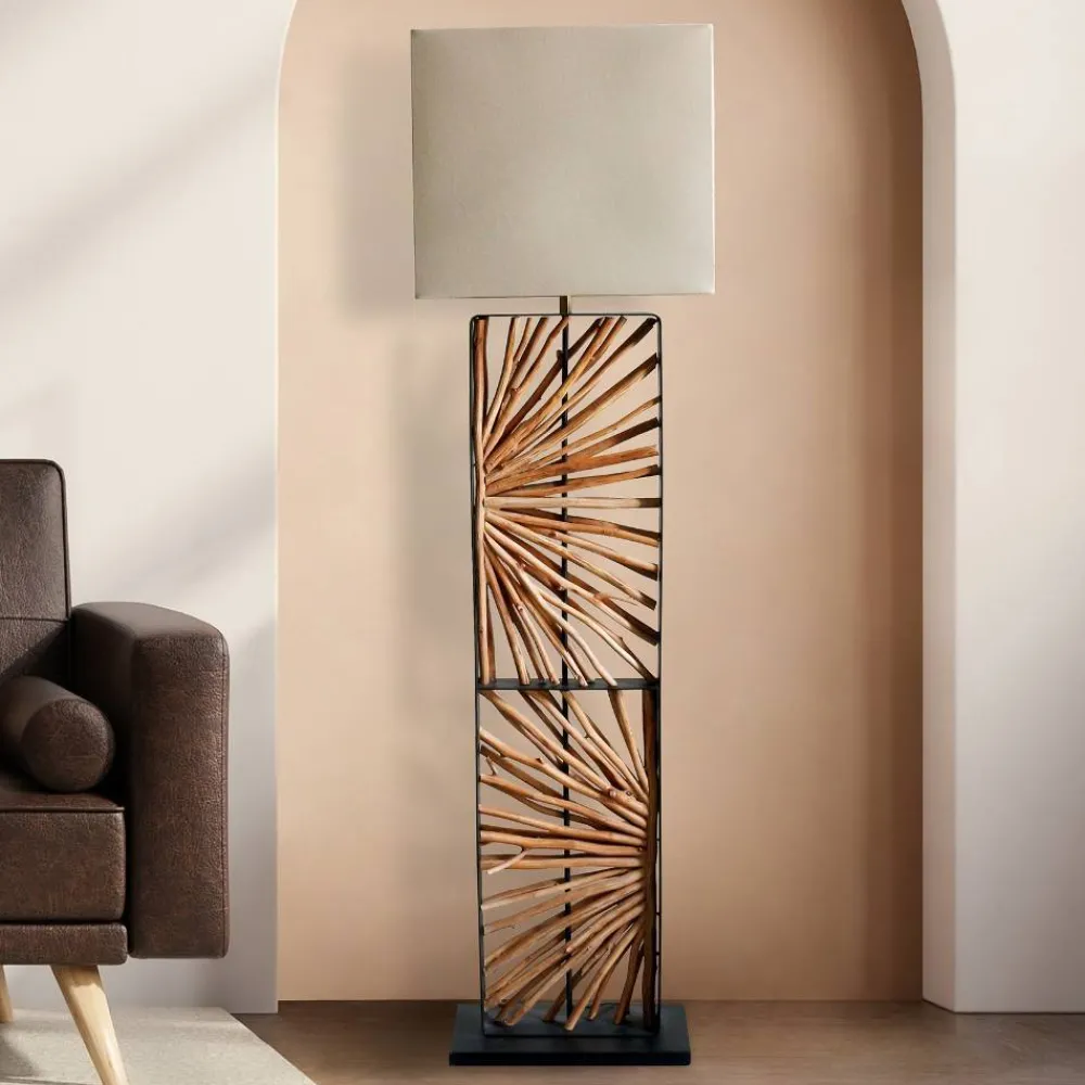 - Erstklassige Stehlampe in Beige, Schwarz und Holz Naturfarben