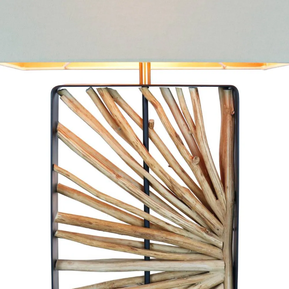 - Aus Metall, Treibholz, Gummibaum Massivholz und Webstoff hergestellt