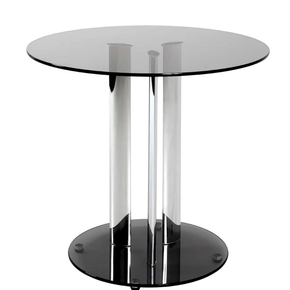 - Drei ellipsenförmige Stahlrohre als Säule auf einer runden Glasplatte (Ø 40 cm)