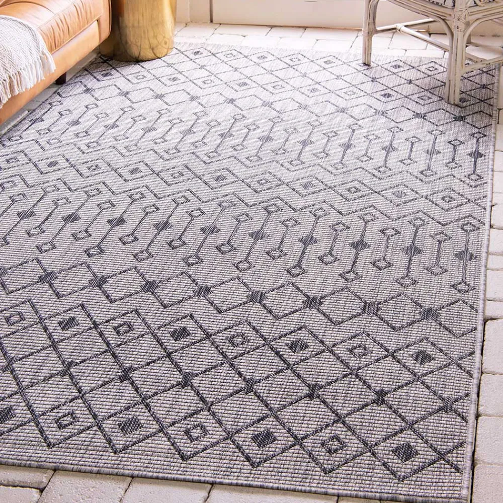 - Robuster In- und Outdoorteppich in Hell- und Dunkelgrau
