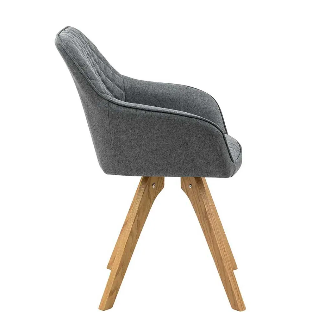 - Schräg nach außen gestellte Vierfußgestelle aus geöltem Eichenholz