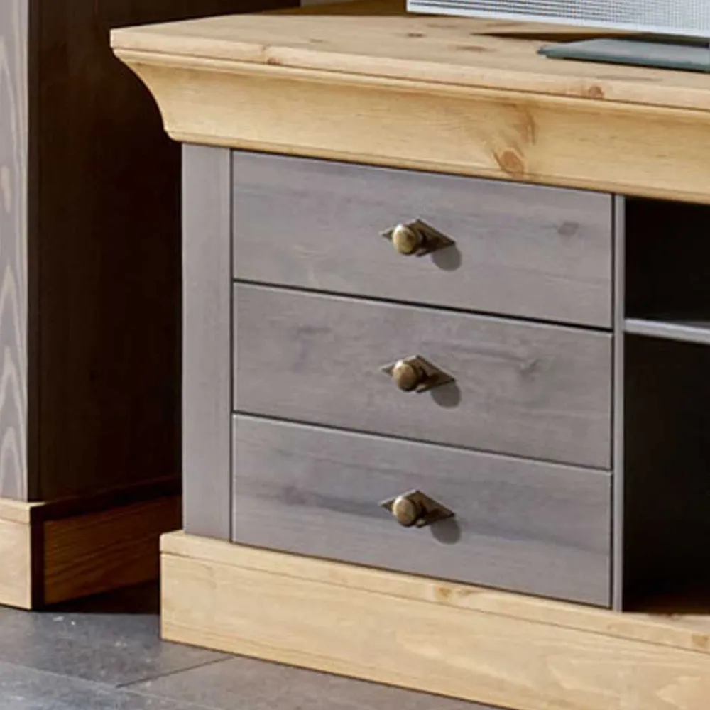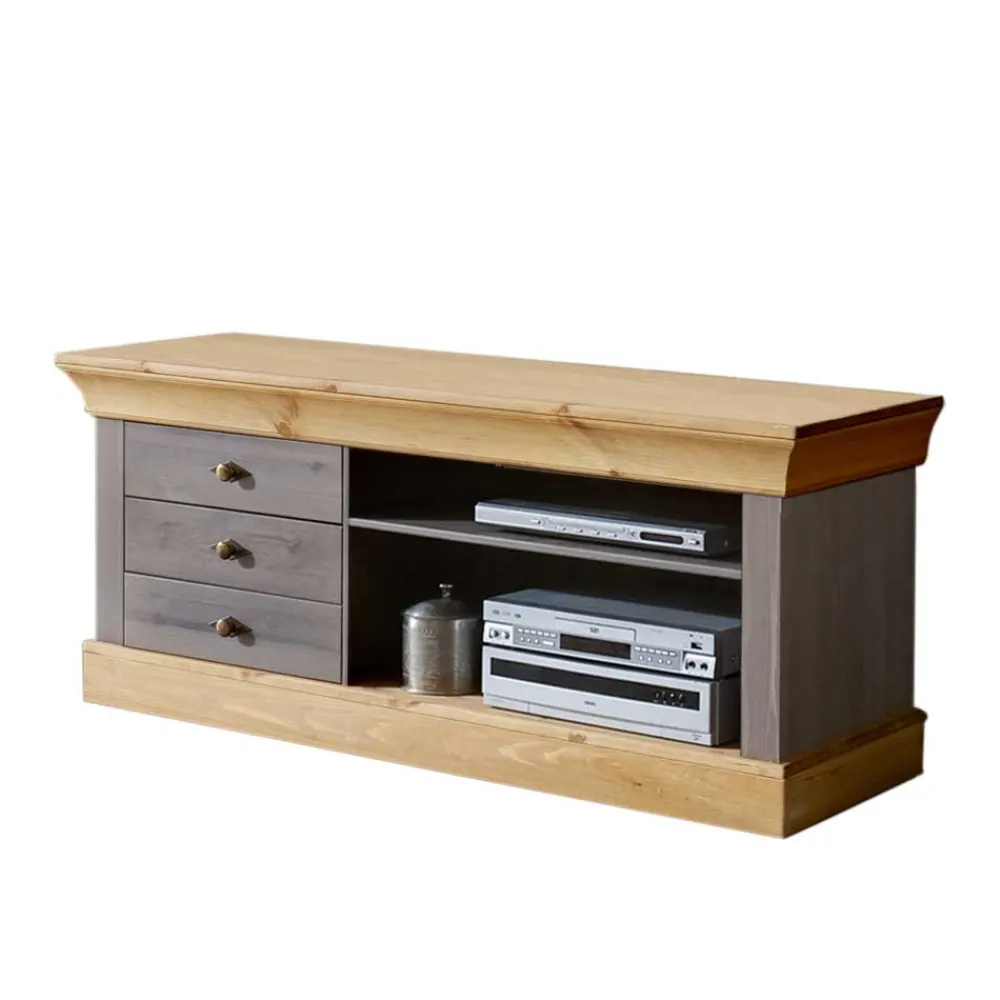 - Praktisches Lowboard in Grau und Kiefer Laugenfarben