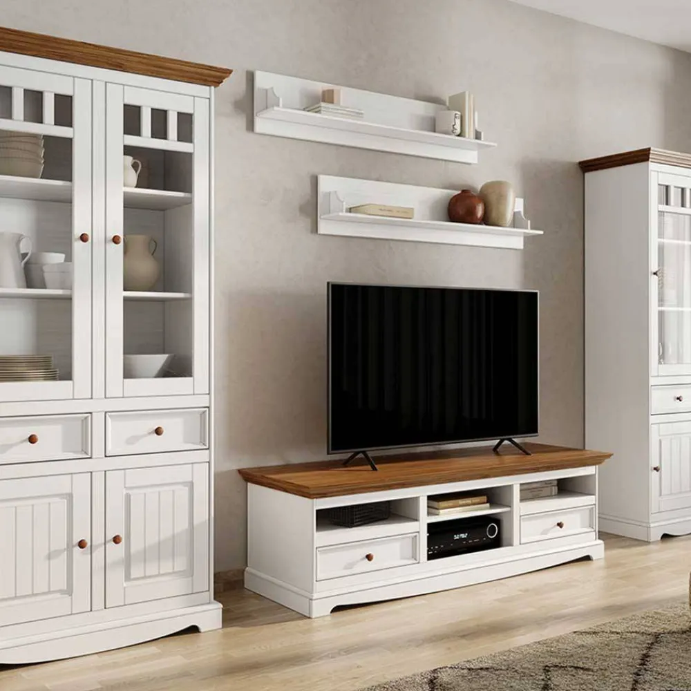 - Ansprechendes TV Lowboard in Weiß und Eichefarben