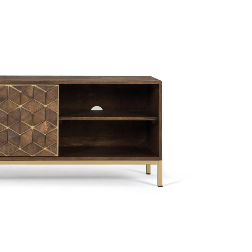 - Attraktives Lowboard in Walnussbraun und Goldfarben