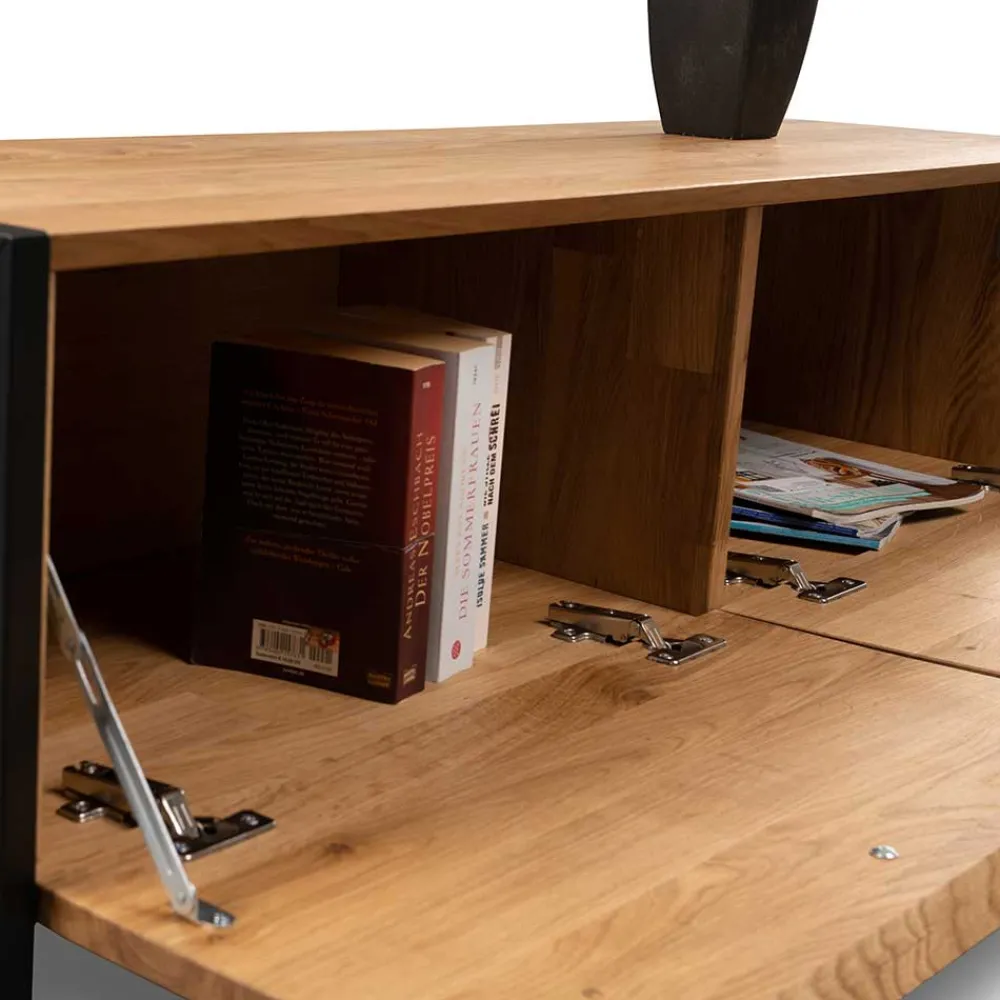 - Aus Wildeiche Massivholz und Metall hergestellt