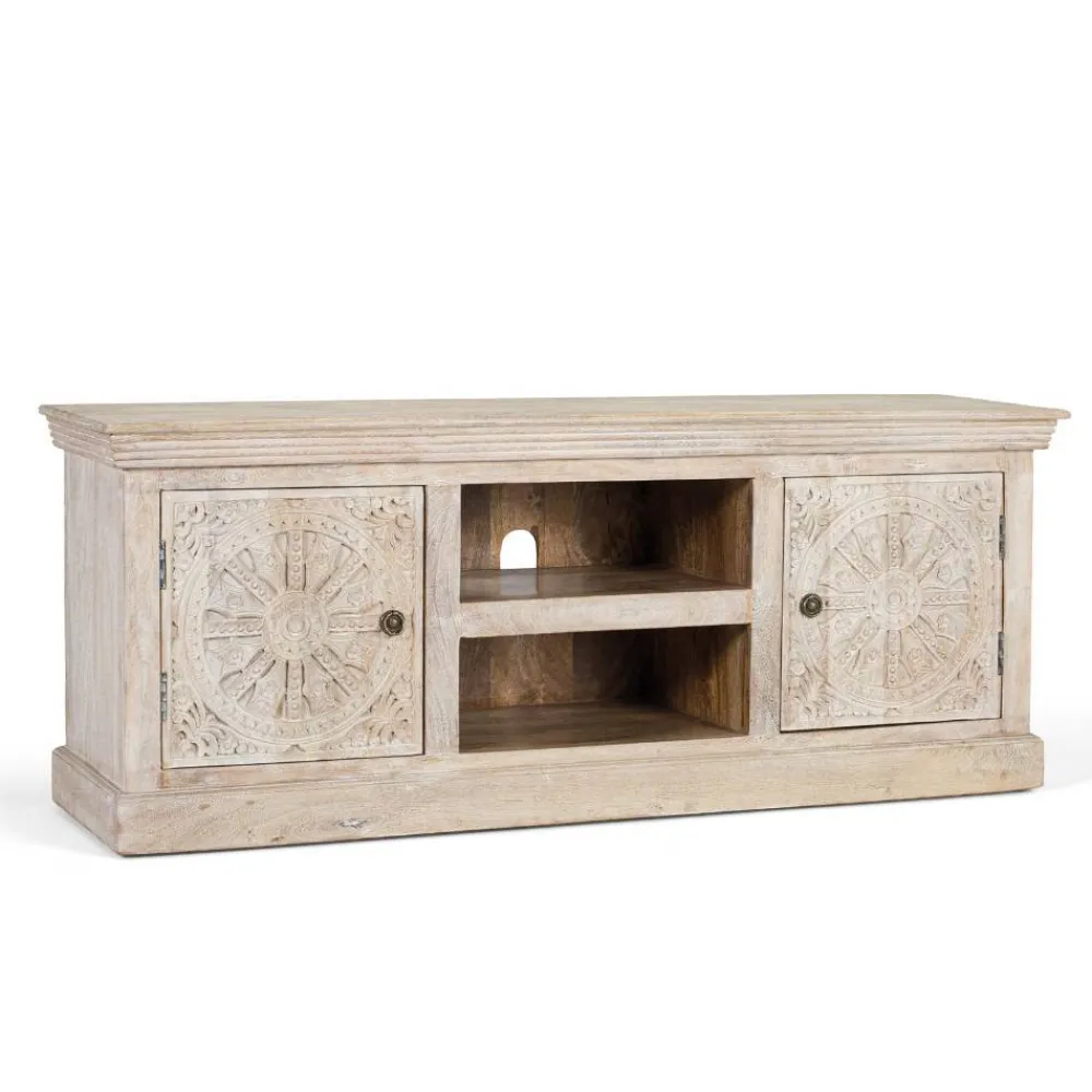 - Hübsches TV-Lowboard in Mangoholz Sandfarben