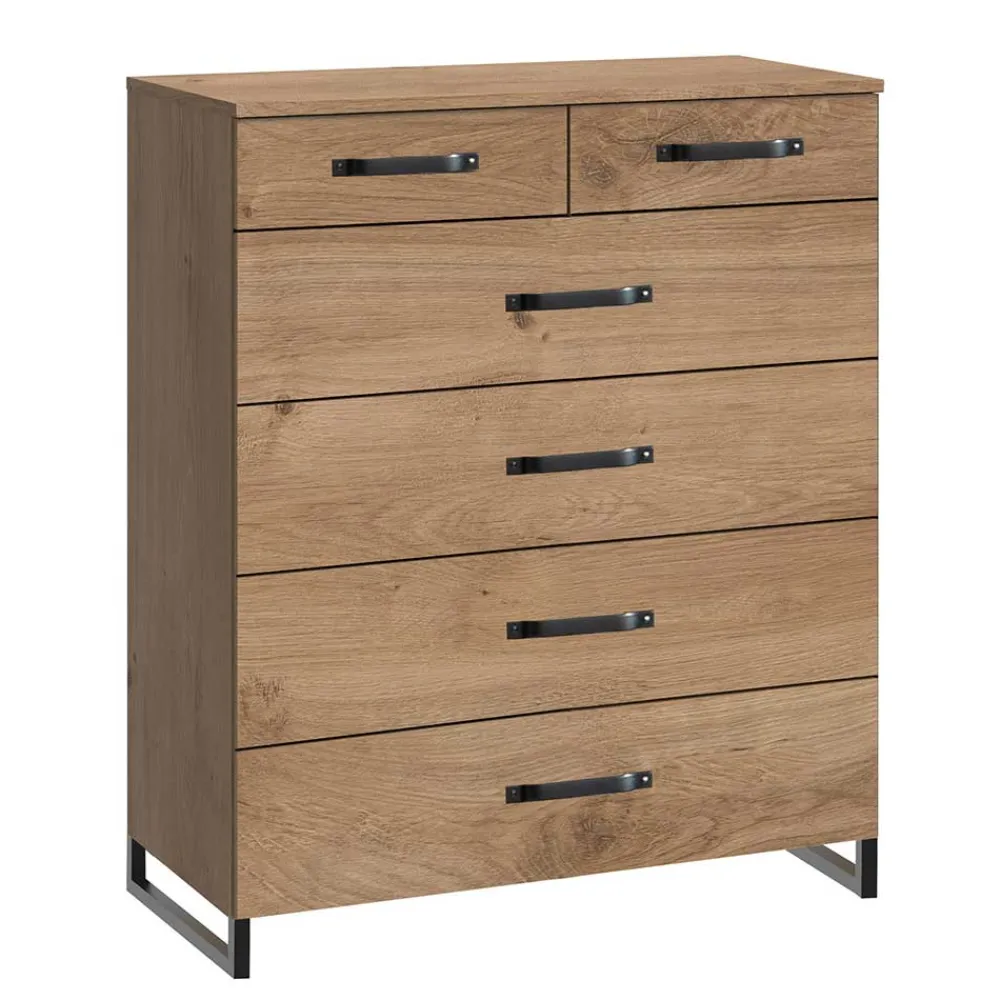 - Geräumige Kommode in Eichefarben und Schwarz