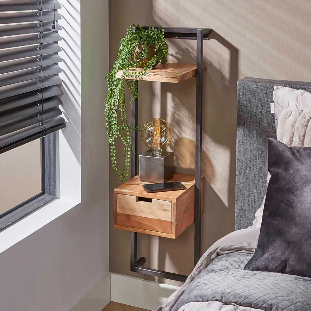 - Interessante Nachtkonsole in Akaziefarben und Schwarz