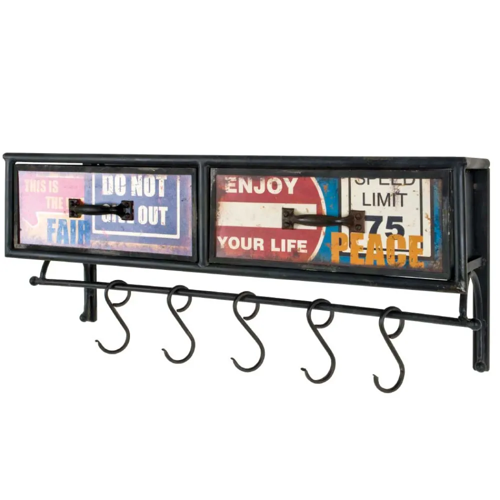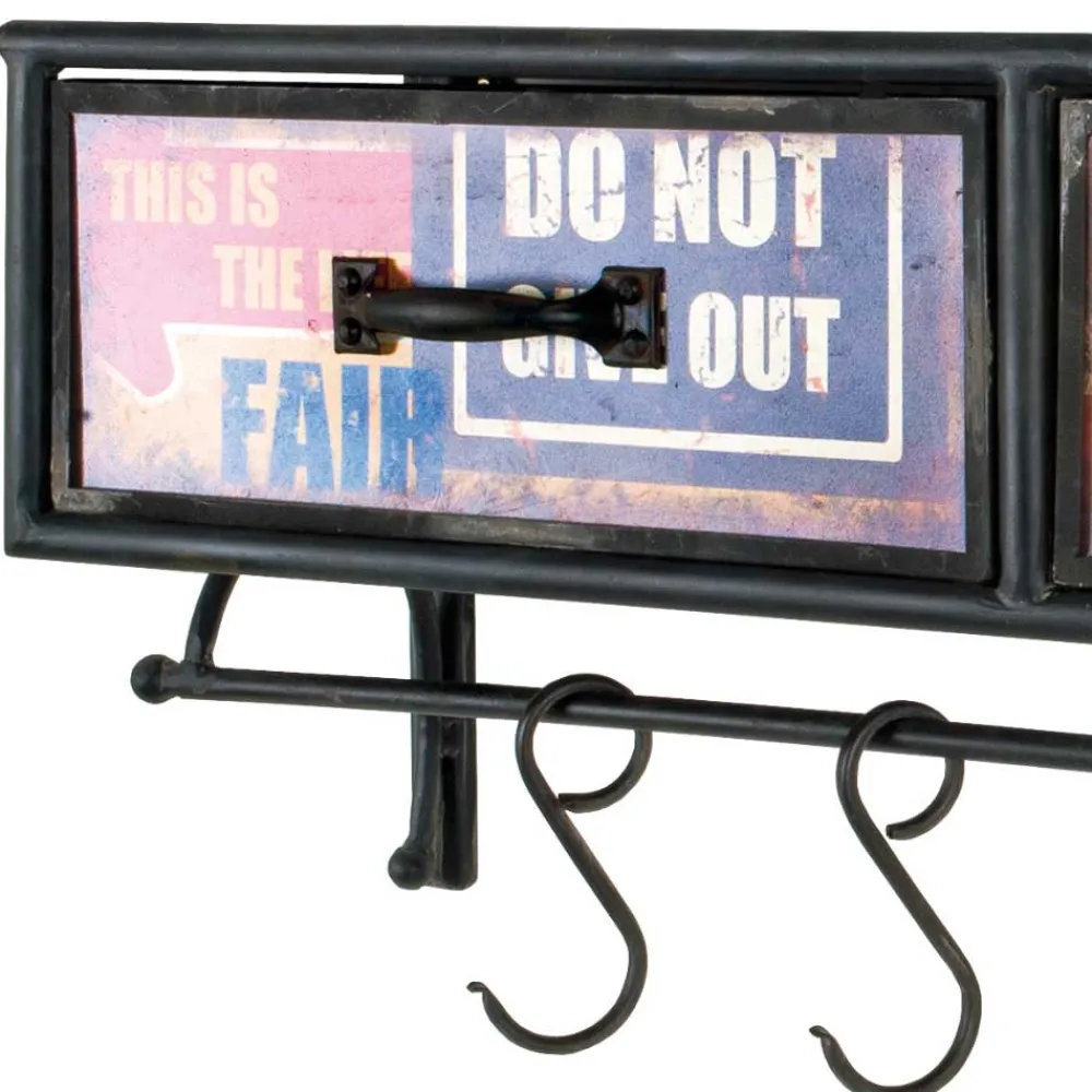 - Originelle Wandgarderobe in Schwarz mit bunten Schubkastenfronten