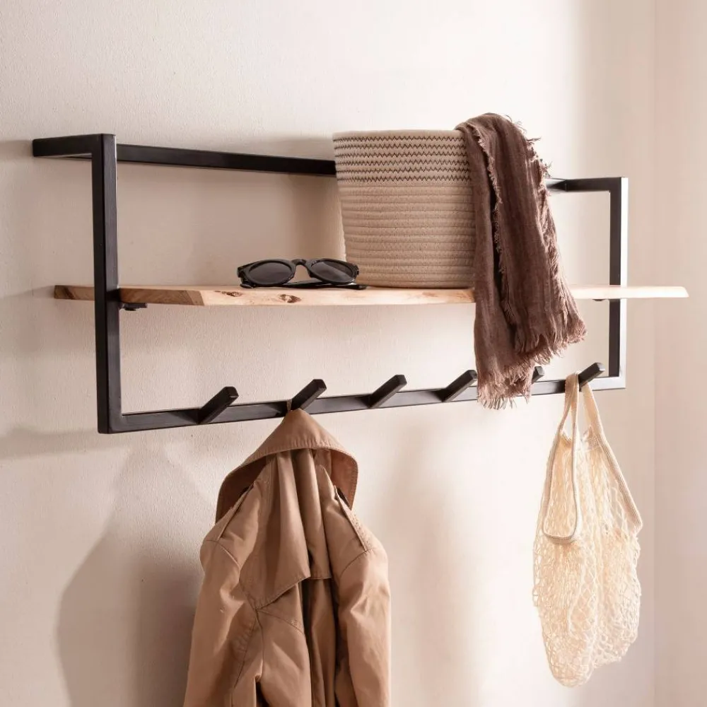 - Rustikale Wandgarderobe in Akazie Naturfarben und Schwarz