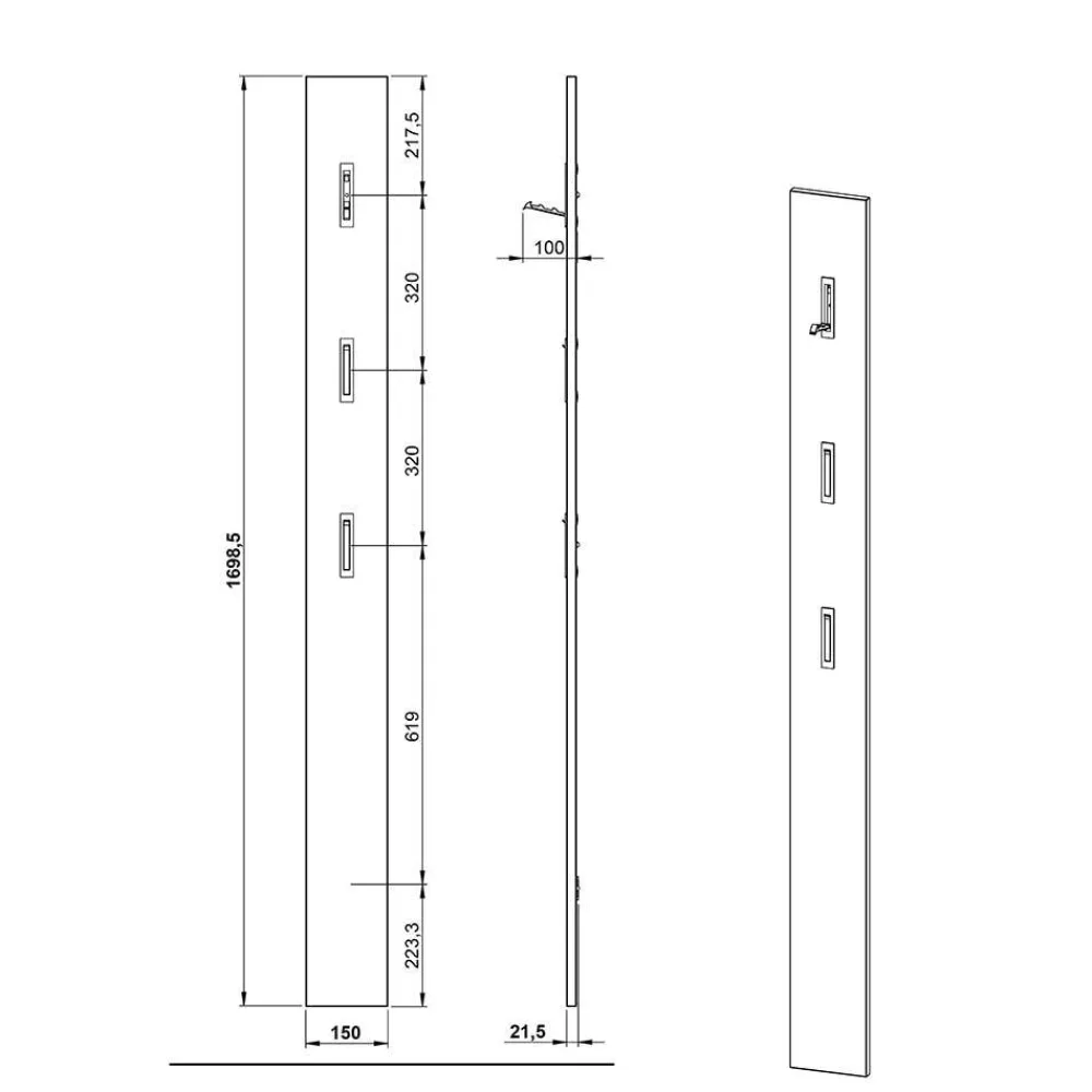 - Schmales Garderobenpaneel in Hellgrau