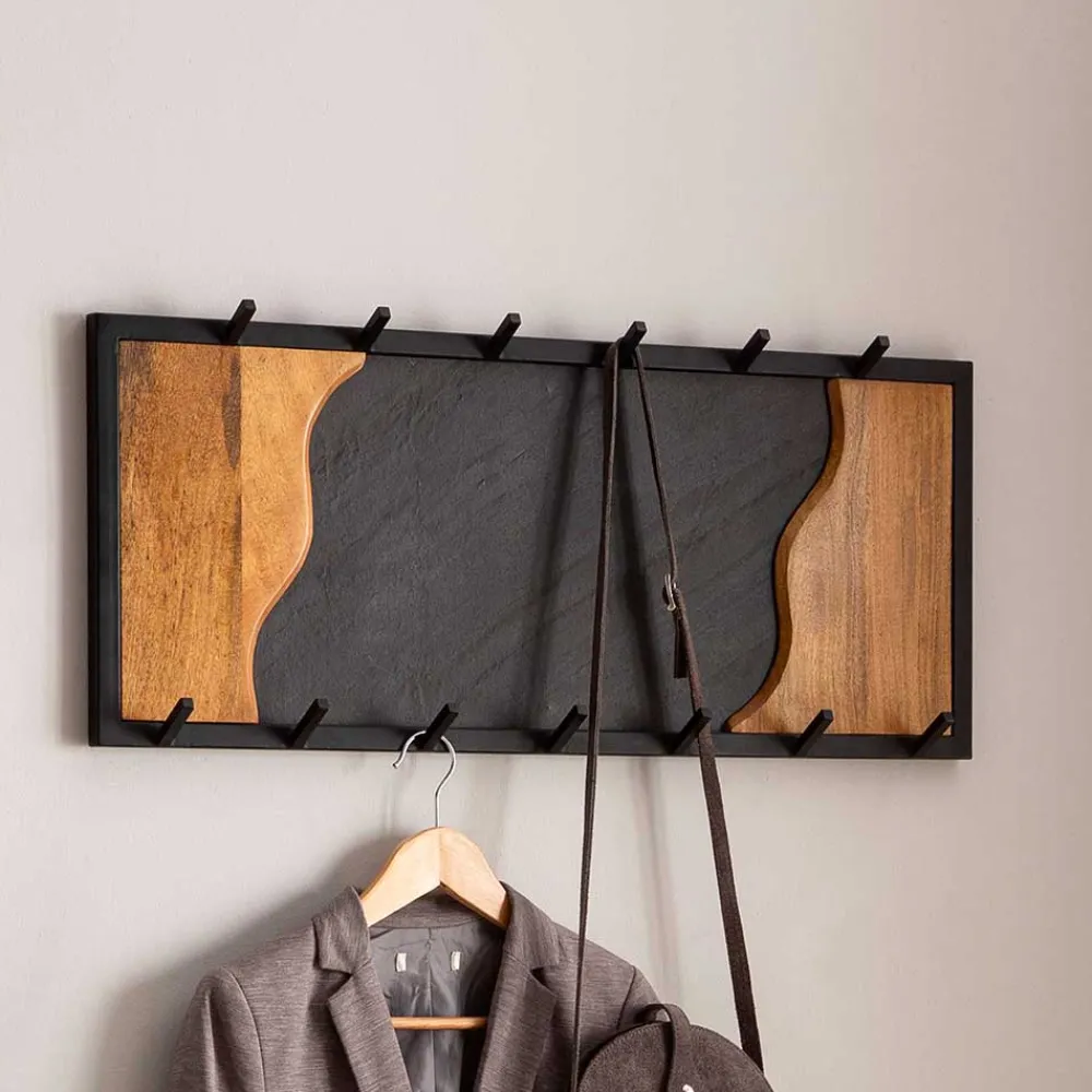 - Interessante Garderobe in Mangoholz Naturfarben, Anthrazit und Schwarz