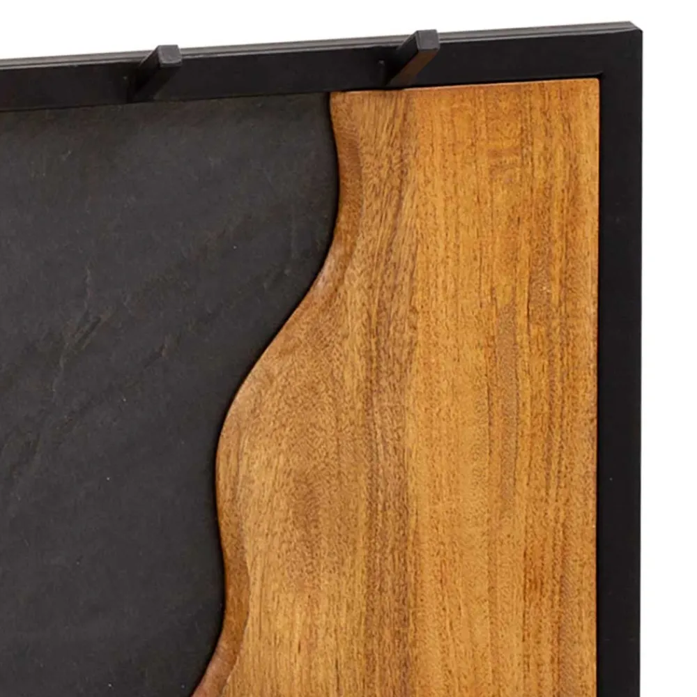 - Rückwand aus massivem, lackiertem Holz und in 3D Steinoptik Anthrazit beschichteter MDF