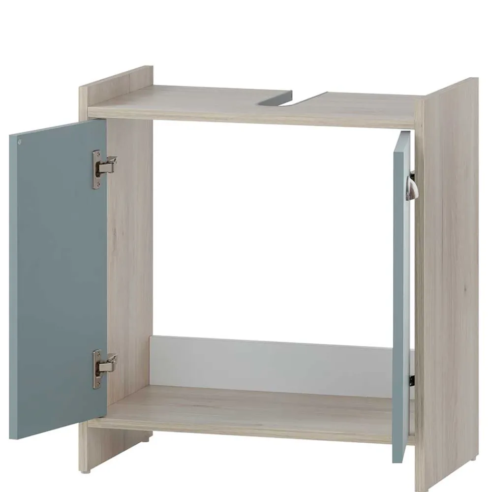 - Klasse Bad-Unterschrank in Hellblau und Eiche hell