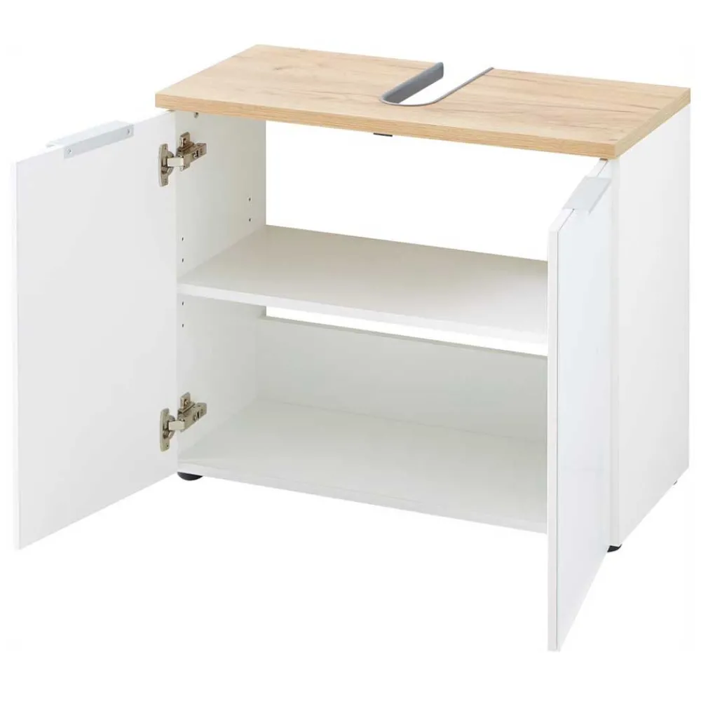 - Fantastischer Bad Unterbeckenschrank in Weiß und Eichefarben